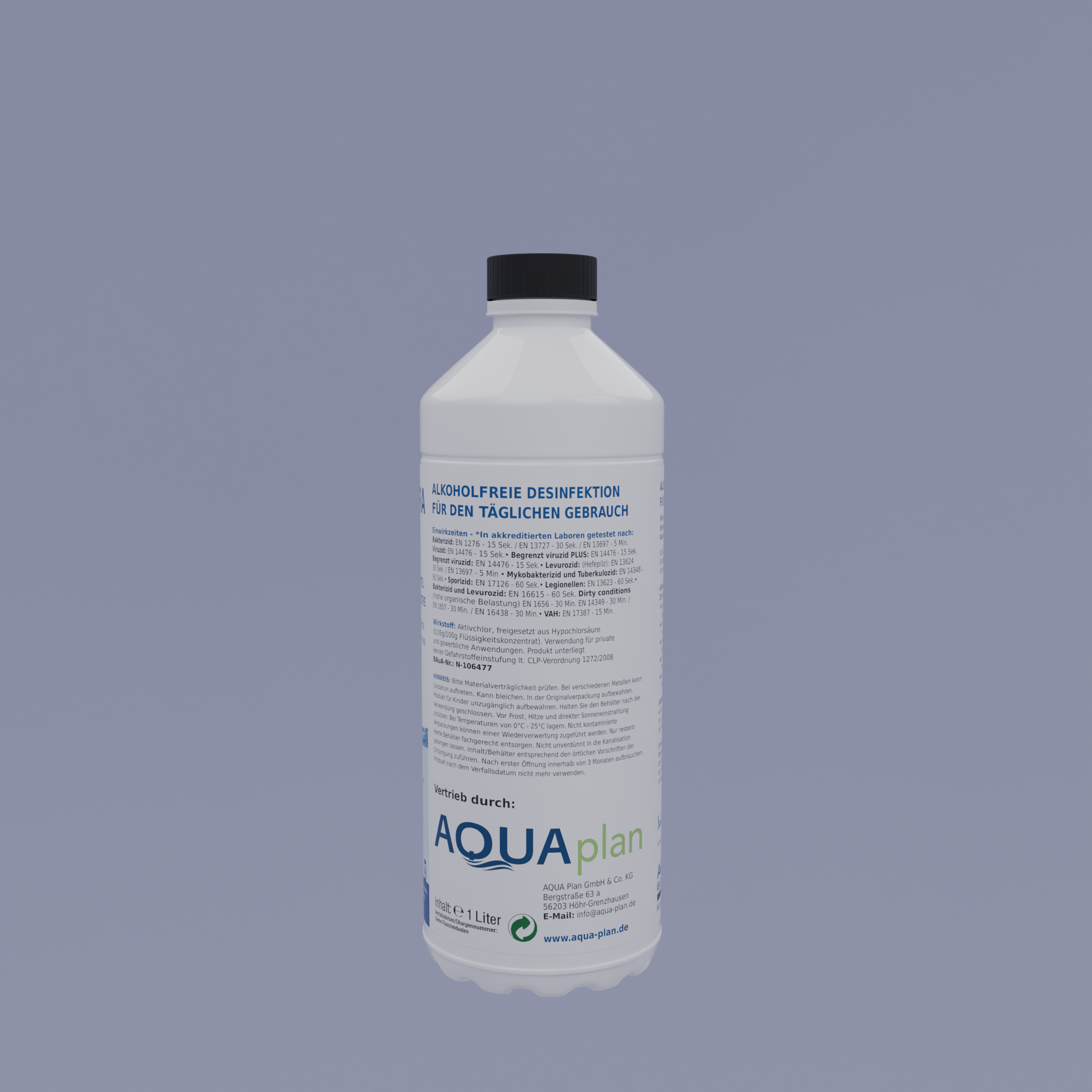 - Wirkstoff: Aktivchlor (freigesetzt aus Hypochloriger Säure), 0,059 g/100 g